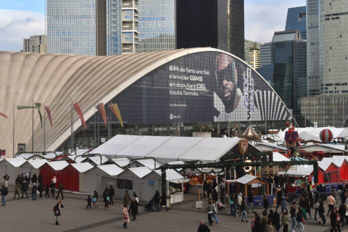 En cette fin d’année, Gims est un peu la star de La Défense. Alors que le chanteur congolais s’apprête à investir la Paris La Défense Arena pour cinq shows, Spotify fait de lui son égérie avec une publicité géante de 3 000 mètres carrés sur la façade vitrée du Westfield Cnit. Cette réclame monumentale célèbre les plus de 8 millions d’écoutes du morceau « Ciel » sur Spotify. Visible jusqu’à la fin de l’année, cet affichage hors norme se dévoile aux yeux des centaines de milliers de personnes qui arpentent le parvis de La Défense et son marché de Noël.