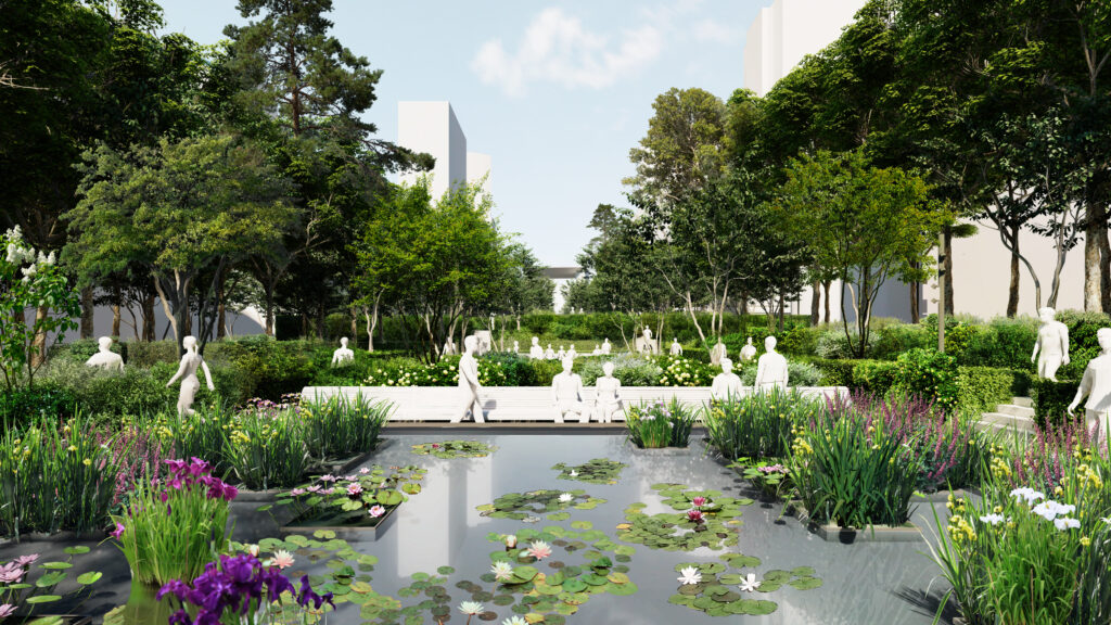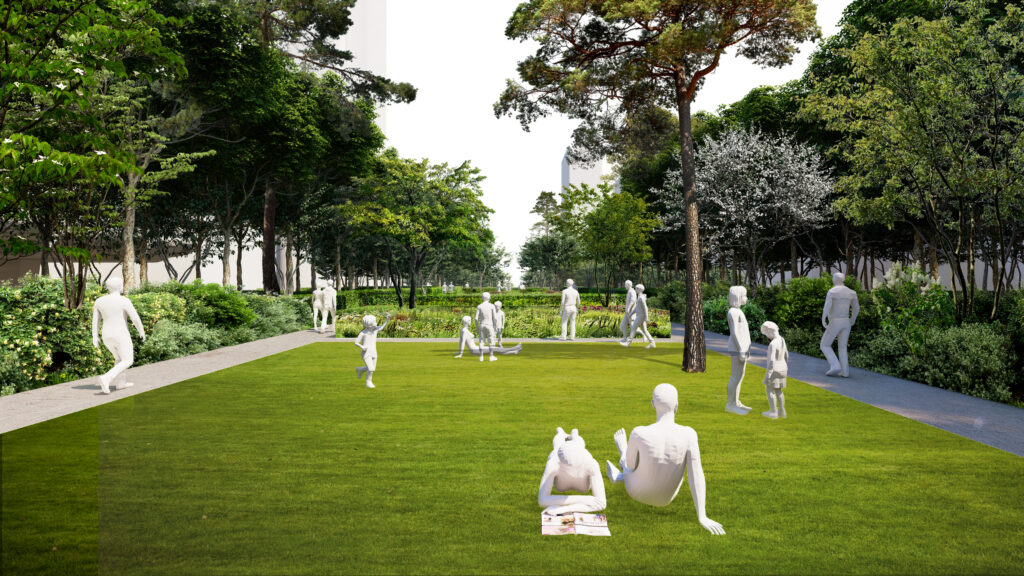 Outre sa dimension écologique, Le Parc proposera une large variété d’usages. Il comprendra plus d’un millier d’assises (bancs, chaises longues, hamacs…), des aires de jeux, six nouveaux bassins biologiques, 2 000 mètres carrés de pelouses accessibles, ainsi que des espaces dédiés aux loisirs comme la pétanque, le yoga ou la danse. Le Parc mettra également en valeur plusieurs œuvres d’art emblématiques déjà présentes, comme la fontaine Agam, la cheminée Moretti ou encore la statue de La Défense, dans la continuité de la vocation culturelle du quartier.