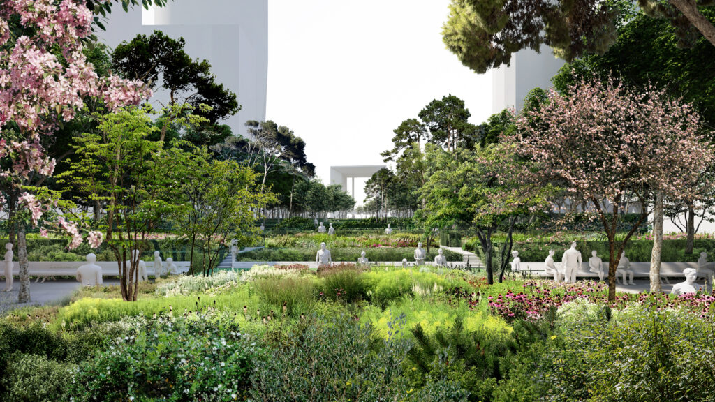 À terme, le parc s’ornera de près de 850 arbres, dont 314 nouveaux, issus d’une palette végétale diversifiée mêlant essences locales, méditerranéennes et résistantes à la sécheresse. Une partie des arbres existants sera conservée, notamment les majestueux platanes plantés selon les dessins du paysagiste américain Dan Kiley, qui avait imaginé l’Esplanade au début des années 1970. « Respecter l’esprit de Dan Kiley, c’est ajouter d’autres strates de végétaux. Je me réjouis de cette transformation qui ne renie pas le passé, on joue avec », confie Michel Desvigne, le paysagiste du projet.
