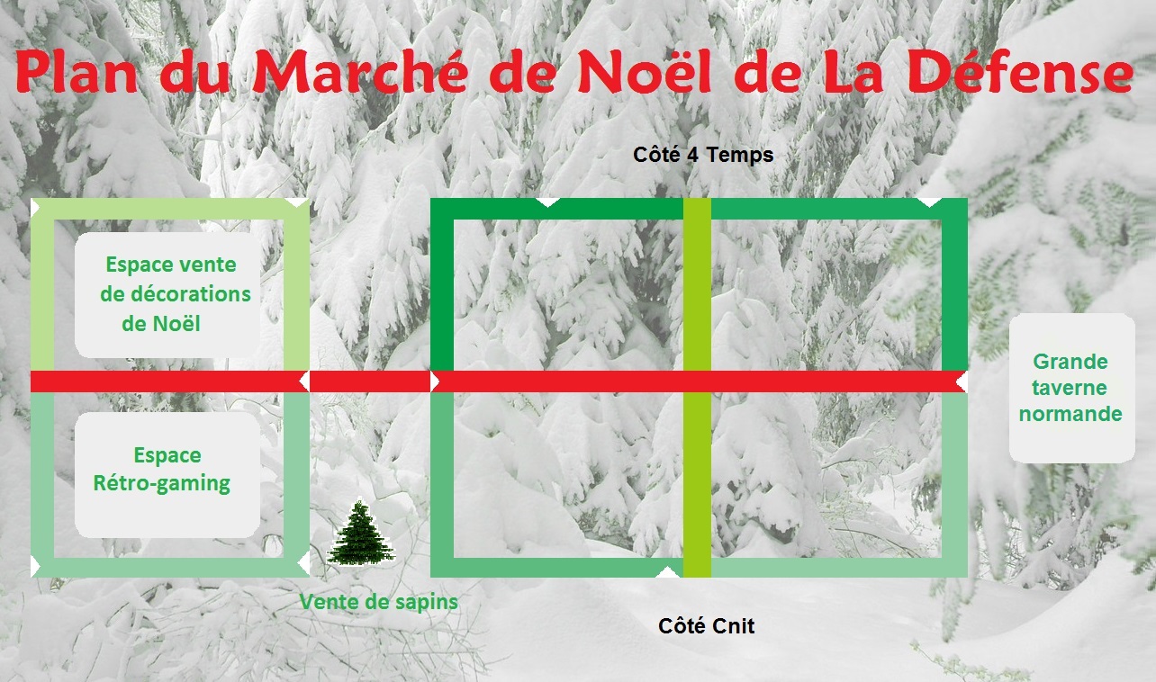 Cette année le Marché de Noël de La Défense fête ses 20 ans: deux décennies que les petits chalets en bois s’installent sur le Parvis de La Défense. Pour cette édition 2014, pendant cinq semaines du 20 novembre au 28 décembre l’esprit de Noël va s’emparer de La Défense. Sur plus de 12 000 m² , plus de 350 chalets en bois composent ce village éphémère relooké pour l’occasion de blanc, de rouge et d’or .
