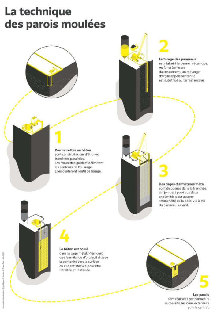 « Pour les besoins techniques de cette étape (celle des parois moulées, ndlr), les équipes travailleront du lundi au vendredi de 7 heures à 23 heures, et ce jusqu’au 27 mars 2026 », préviennent le groupement IntenCités et la SGP.
