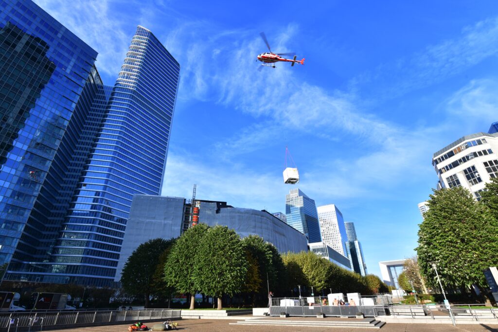 Une opération aussi express que bruyante. La quiétude du quartier d’affaires de La Défense a été quelque peu perturbée ce samedi matin, où un hélicoptère est intervenu pour un chantier aérien.