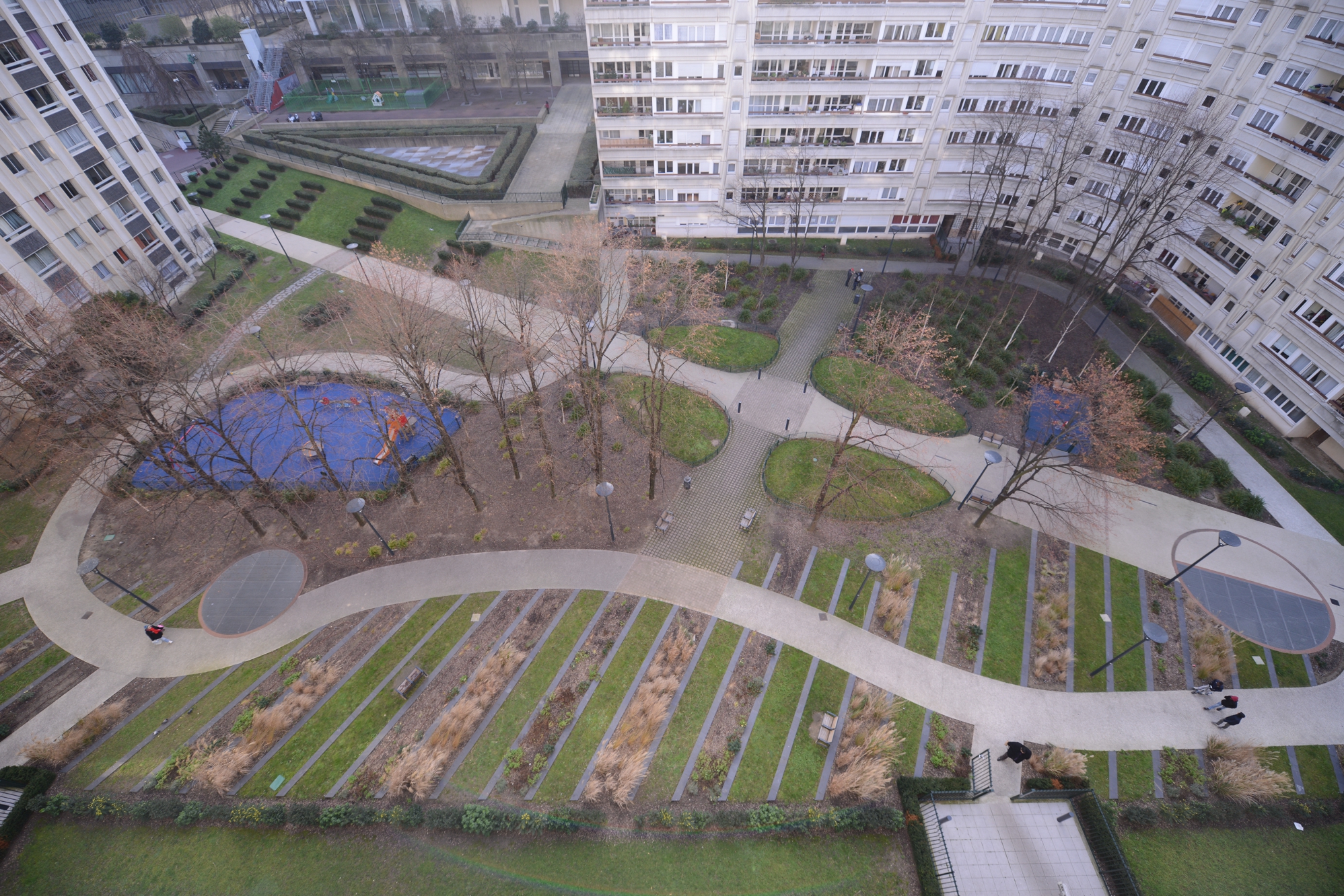 Situé entre les résidences Dauphins, Leclerc et la tour Gambetta ce square de 6 000 m² créé dans les années 70 a été entièrement ré-imaginé entre 2012 et 2013 par l’agence de paysage Traitvert. La surface engazonnée a été augmentée d’un tiers passant à 3 800 m²: 61 arbres ont été plantés augmentant le nombre total de 23, avec en majorité de hautes tiges : pruniers, érables champêtres et frênes. Un nouvel éclairage, au LED plus adapté a permit d’éclairer efficacement le jardin sans que la lumière ne gène les riverains. Des jeux pour enfants y ont été également installés dans une aire plus sûre.