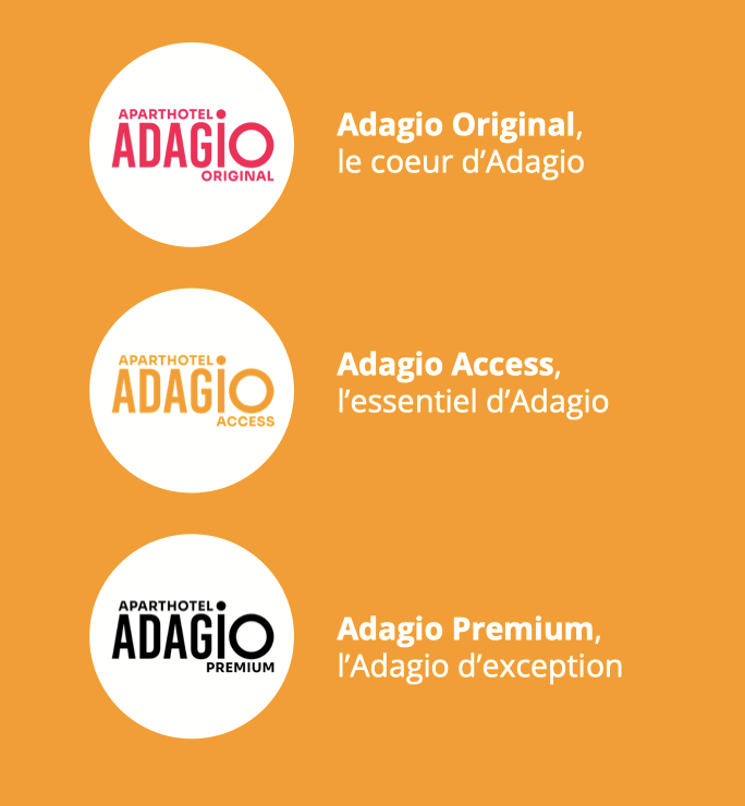 Une nouvelle identité visuelle pour Adagio. Le leader européen de l’appart’hôtellerie vient de dévoiler sa nouvelle identité visuelle pour ses trois marques : « Adagio Original », « Adagio Access » et « Adagio Premium ».