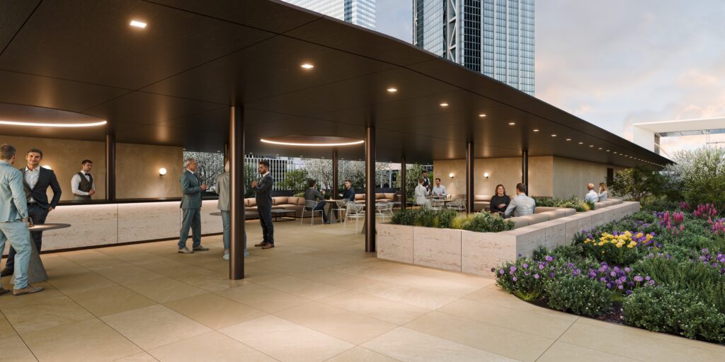 La rénovation, confiée au cabinet Architecturestudio et menée par Dumez (Vinci Construction), sera ainsi soft pour l’immeuble Acacia, occupé encore il y a peu de temps par Allianz. Si la façade en pierre sera conservée et ravalée, l’entrée sera repensée pour devenir plus accueillante et lumineuse, tandis que les plateaux de bureaux seront modernisés. Mais c’est surtout au sommet de l’édifice que les choses vont bouger, où un rooftop va être aménagé sur la terrasse technique.
