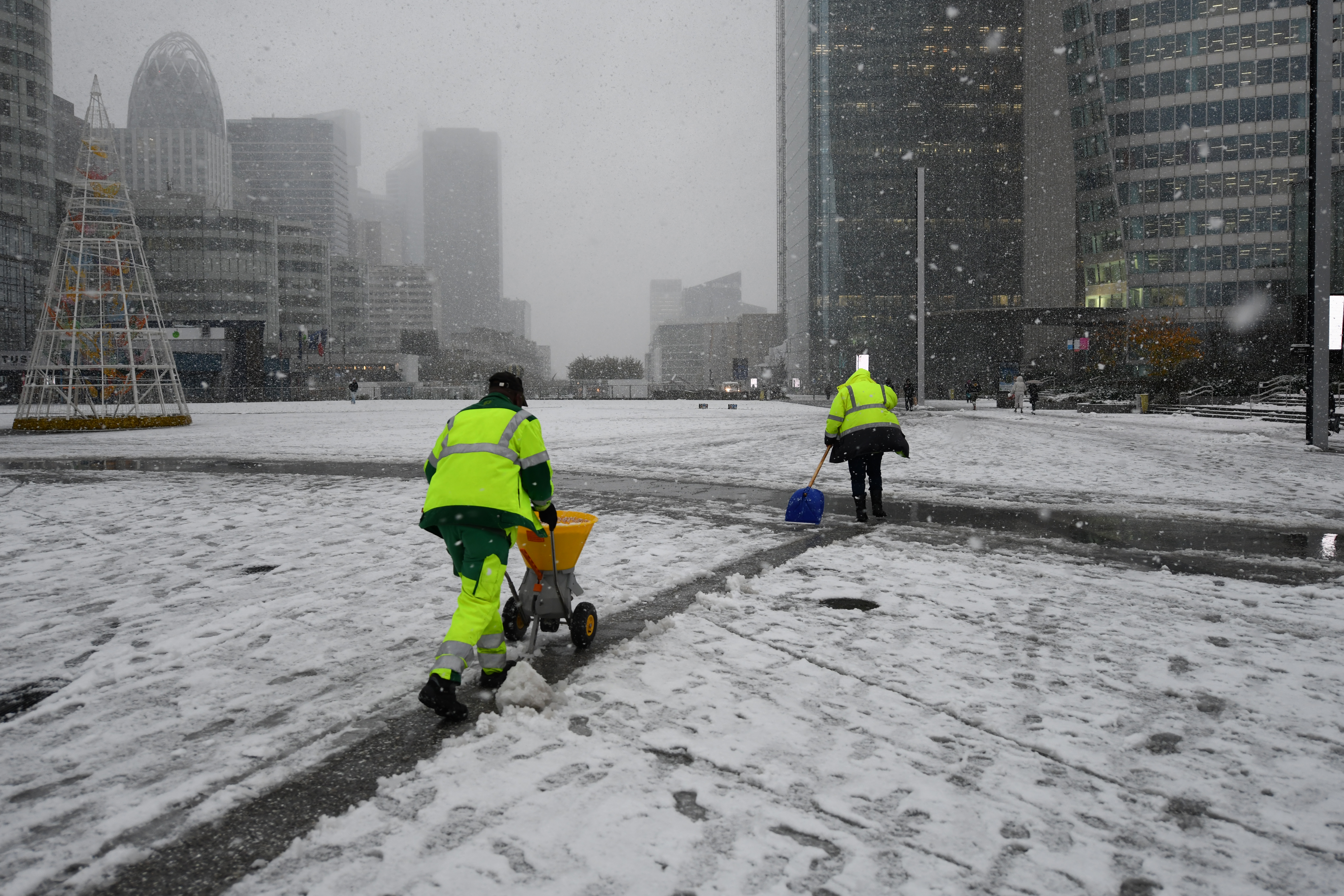 La Défense est prête à passer un hiver rigoureux. Alors que les températures baissent et que l’hiver approche, Paris La Défense a activé ce vendredi 14 novembre son plan de viabilité hivernale. Jusqu’au 16 mars 2026, l’établissement public va s’appuyer principalement sur son prestataire Europe Services Voirie (ESV) en cas d’épisode neigeux ou d’apparition de plaques de verglas sur la dalle de La Défense.