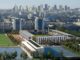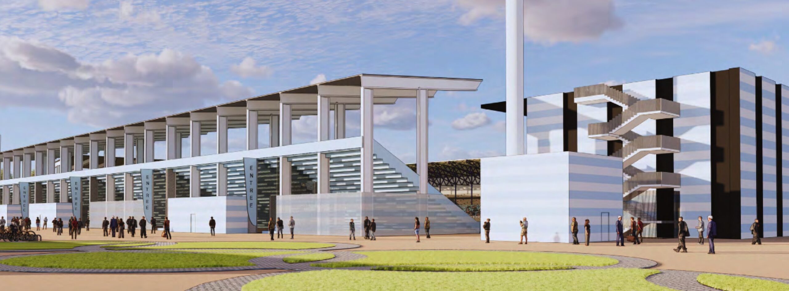 Vue depuis l’allée des anneaux vers l’arrière de la tribunes Est – Atelier AACL