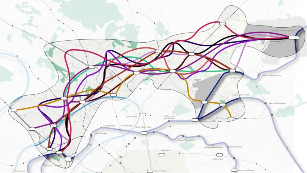 L’étude a analysé onze tracés exploratoires et cinquante-cinq gares potentielles réparties dans vingt-neuf communes, entre le quartier d’affaires de La Défense et Roissy-Charles-de-Gaulle. Selon les scénarios, la fréquentation pourrait atteindre entre 20 000 et 29 000 voyageurs à l’heure de pointe du matin, soit un niveau supérieur à celui des lignes 16, 17 et 18 du Grand Paris Express. Les tracés envisagés représentent de vingt-huit à trente-sept kilomètres de voies, avec sept à quinze gares, et permettraient de desservir environ 300 000 habitants et 170 000 emplois situés à moins de 800 mètres d’une station. Trois scénarios exploratoires sont aujourd’hui sur la table.