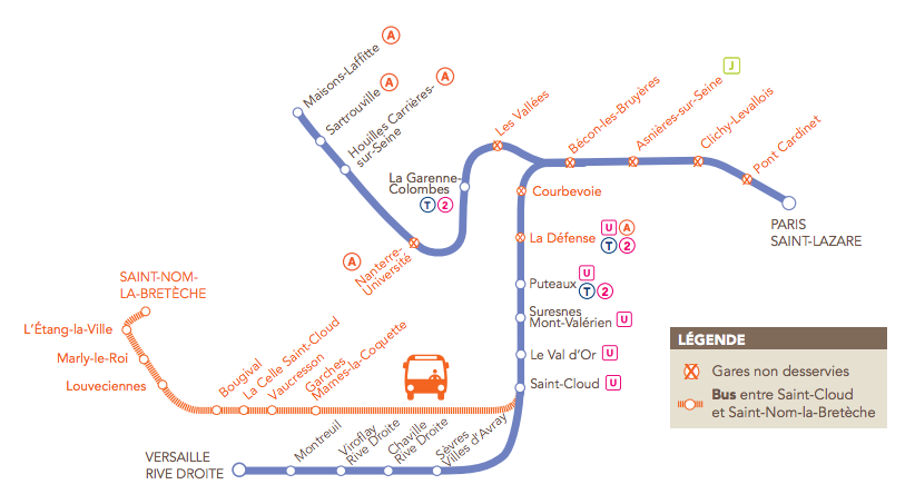 Le vendredi 16 mai de 22h à la fin du service, des travaux de maintenance sur les voies du Transilien modifient la circulation des trains entre Paris Saint-Lazare et Versailles Rive Droite, Paris Saint-Lazare et La Défense, Saint-Cloud et Saint-Nom la Bretèche et Paris Saint-Lazare et Nanterre Université.
